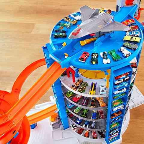Túl sok Hot Wheels kisautód van, és szeretnéd őket egy megfelelő helyen tárolni? Akkor ez a Super Ultimate garázs kiváló választás, hiszen a garázsban több mint száznegyven autónak van hely. A többszintes garázsban nem csak temérdek parkolóhely van, Egy vagány spirálos lift is, amivel a járgányokat a parkolóház felső szintjére varázsolhatod. Ráadásul a spirálos lifttel az óriás gorillát is mozgatni tudod fel és le. A készletben négy Hot Wheels kisautót is találsz, illetve egy szuperszonikus vadászgépet, ami kényelmesen landolhat a garázs legfelső szintjén. Ezzel a garázzsal nem csak számtalan autót tudsz tárolni, de nagyszerű játékélménnyel is kecsegtet.