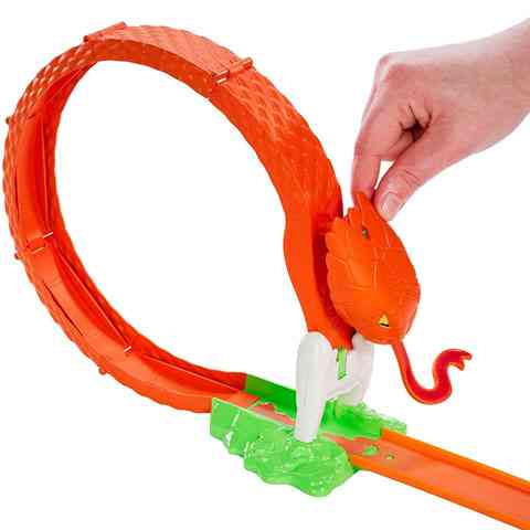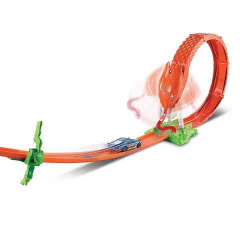 Alighanem ilyen veszélyes pályán még egyetlen Hot Wheels kisautód sem száguldott végig, hiszen a pálya végén egy titáni kobra várja a versenyzőket. Ha jól időzítettél, akkor elkerülheted a hatalmas állat villás nyelvét és félelmetes méregfogait. A balszerencsés versenyzőknek alighanem ez életük utolsó futama, de az ügyes pilóták kiteríthetik az egész kígyót, így méltán hősként ünnepelhetik őket.