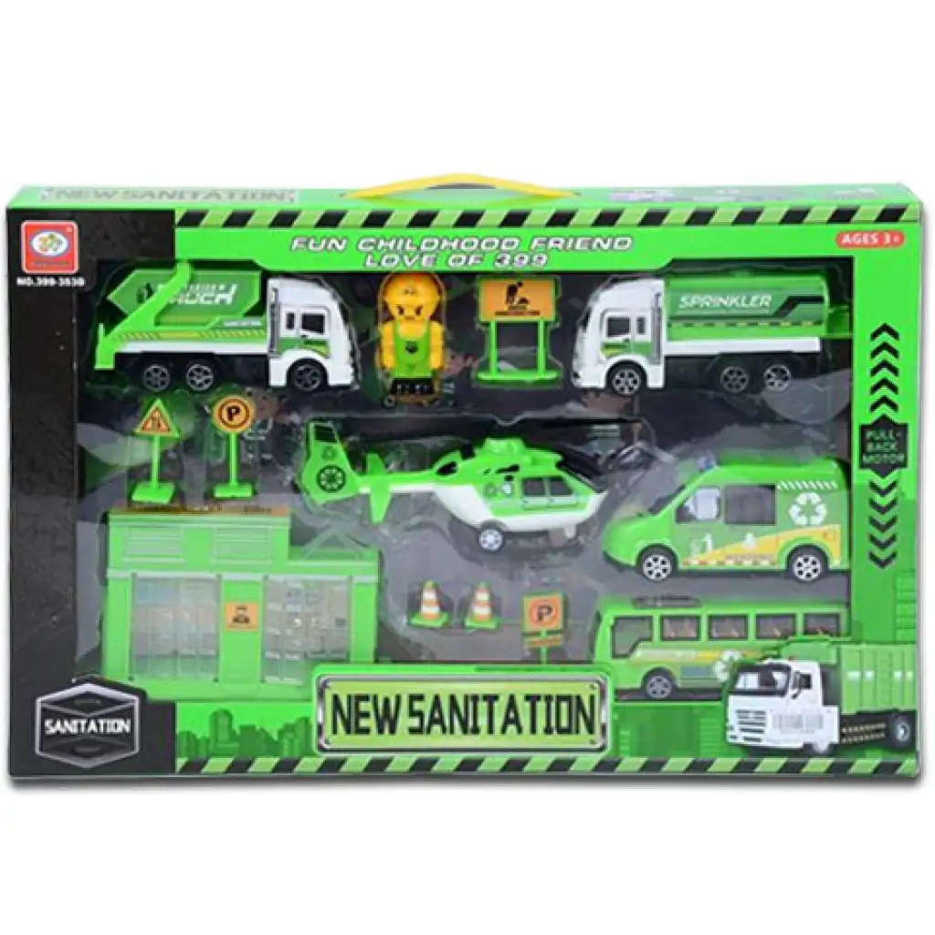 Konténerszállítót, tartálykocsit vagy akár buszt is használhatnak a játék során a kicsik az hulladékkezelés során, mely izgalmas jeleneteket tartogat számukra. A helikopterrel is kiegészített izgalmas járműszettet a kicsik a homokozóban vagy a szobában is használhatják, így garantálva a szórakoztató játékélményt. Az élénk zöld színű járművek tökéletes elemei lesznek az építős játéknak, melyben a kiegészítő játékelemeket is felhasználhatják.