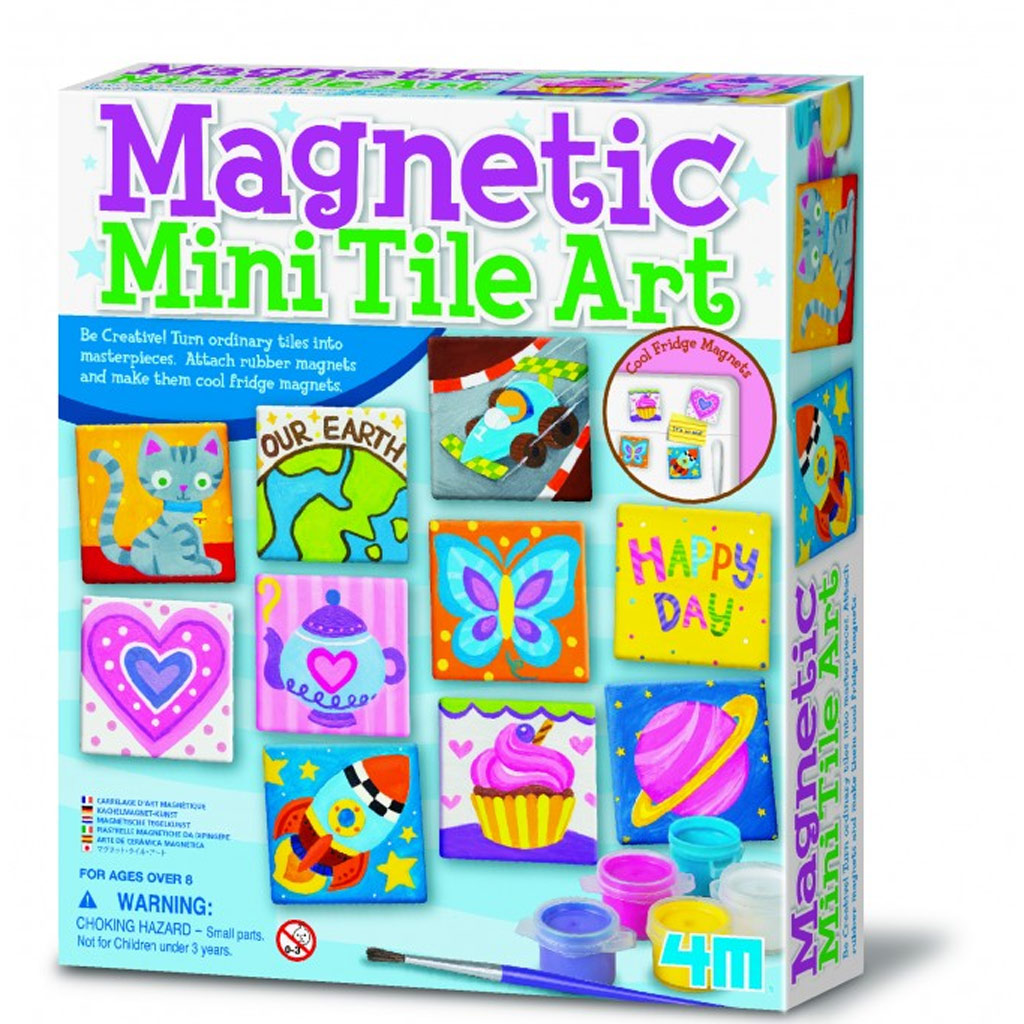 Engedd szabadjára gyermeked kreativitását ezzel a szuper szórakoztató hűtőmágnes készítő szettel! A 4M Magnetic Mini Tile Art lehetővé teszi, hogy a gyerekek saját, egyedi hűtőmágneseket alkossanak csempeméretű festhető lapokra – színes, kedves és vicces motívumokkal, vagy akár teljesen saját ötletekkel. A szett minden szükséges eszközt tartalmaz a művészi alkotáshoz: ecsetet, festékeket, mágneslapokat és természetesen a festhető mini csempéket.