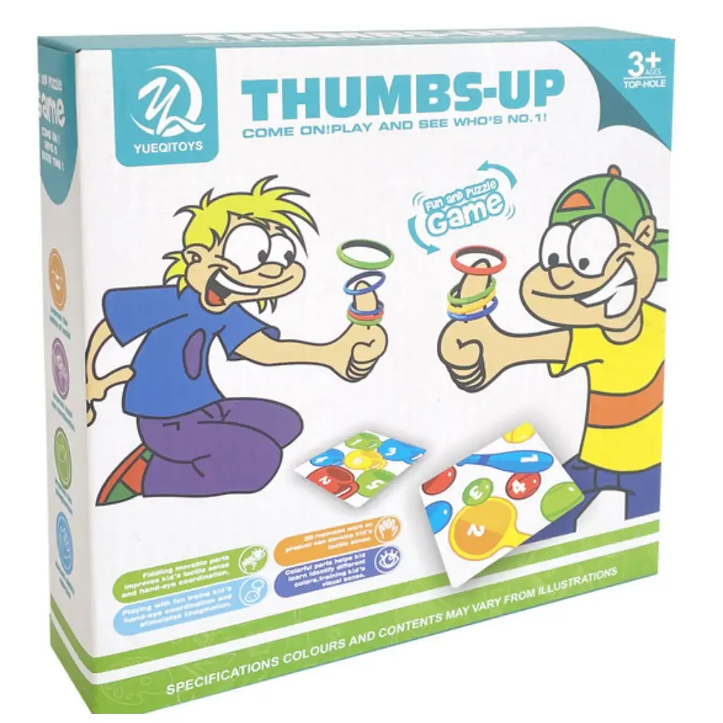 Fedezzétek fel együtt a "Hüvelykre fel!" logikai társasjátékot, ahol a gyorsaság és az ügyesség diadalmaskodik! Ez a színes és izgalmas játék tökéletes a családi játékéjszakákra, ahol mindenki próbára teheti reflexeit. A cél egyszerű: a kártyákon megjelenő minta alapján a leggyorsabb időn belül a megfelelő színű és formájú gyűrűket kell a hüvelykujjra fűzni. Könnyedén tanulható, így már a legkisebbek is élvezhetik, miközben fejleszti a szín- és forma felismerés képességét, valamint a finommotoros készségeket.