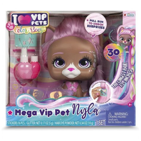 Megérkezett az eddigi legnagyobb I love Vip Pets kisállat, Nyla. A 22cm magas kutyus figura megdöbbentően hosszú, 43cm-es hajkoronával rendelkezik, melyet a gyerekek kedvük szerint alakíthatnak. A dobozban 30db meglepetés kiegészítő található, melyekkel Nyla még csodálatosabbá varázsolható. Többek közt hajgumik, hajcsatok, póthajak, napszemüveg és még sok egyéb izgalmas dolog található a szettben. A Nyla kutyus biztosan elnyeri majd kicsik és nagyok tetszését egyaránt.