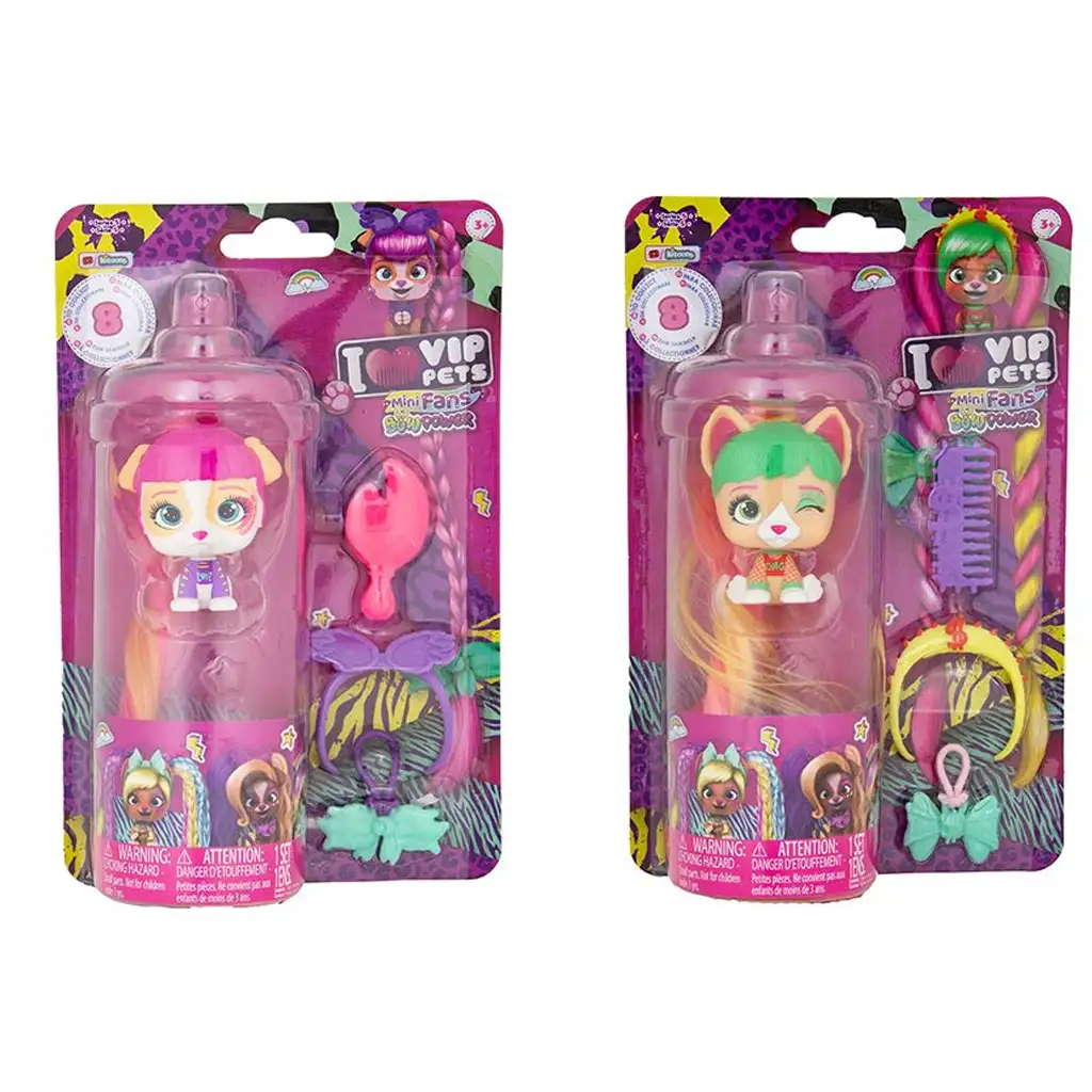 Ahogyan gazdáik, úgy a VIP PETS kiskedvencek is követik a legújabb trendeket. A Mini Fans kollekció 8 extra hosszú szőrű mini kiskutyából áll, akik mind egyedi stílust és megjelenést kaptak. A csomagban 4 izgalmas meglepetés található: 1 mini baba és 3 különböző hajkiegészítő. Minden baba rendelkezik saját egyediségekkel és részletekkel, így a kollekció minden tagja különleges. A készleteket könnyedén kombinálhatod és variálhatod, hogy létrehozd a legmenőbb, legdivatosabb és legvárosiasabb stílust.
