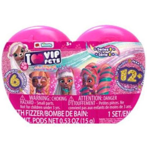 Az I Love VIP Pets meglepetéscsomagban hosszú, színes hajú édes kutyalány-figurák találhatók különféle kiegészítőkkel, így garantáltan azonnal belopják magukat a kislányok szívébe. A rózsaszín műanyag tárolóban a tizenhárom aranyos meglepetés-kutyus egyike található egy fodrászfotelben, amely máris készen áll a fodrászkodásra. A játék megkezdéséhez elegendő a samponos dobozba egy kis vizet önteni, hogy a kutyus fejéről leszedjük a buja hajat takaró törölközőt. Minden kutyus egyedi stílussal és színvilággal rendelkezik, ezért a gyerekek minden bizonnyal megtalálják a saját személyiségüket legjobban tükröző kedvencüket.