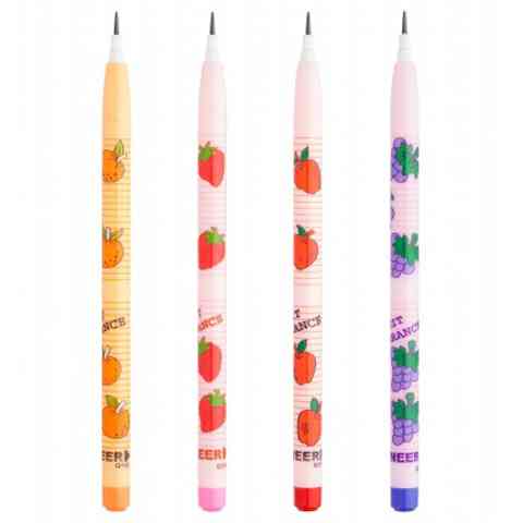 Vidám színek és néhány mutatós gyümölcsös minta nagyon jól mutat egy ceruzán, különösen ha egy kellemes illatú tolóbetétes írószerről van szó, aminek a hegyét egyetlen mozdulattal cserélhetjük, így mindig írásra és rajzolásra készen várakozik a tolltartónkban. A tolóbetétes ceruza nemcsak esztétikus látványt nyújt, hanem a tolóbetét segítségével mindig hegyes ceruzával dolgozhatnak a gyerekek ha éppen arra van a legnagyobb szükség. Ha elkopott a fej, akkor csak annyi a teendő, hogy alulról ki kell húzni, és felül bedugni.