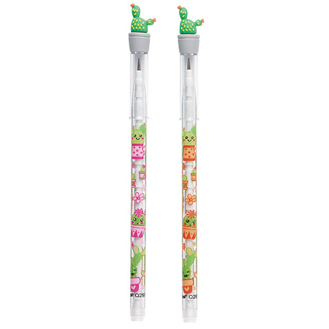 Ez a ceruza biztos, hogy sok kis diák tetszését elnyeri, hiszen az egyik nagy előnye, hogy nem kell hegyezni, a másik pedig a ceruza kupakján elhelyezett kaktusz formájú radír, ami miatt biztos, hogy az egyik legkülönlegesebb lakója lesz a tolltartóknak. A tolóbetét segítségével mindig hegyes ceruzával dolgozhatnak a gyerekek ha éppen arra van a legnagyobb szükség. Ha elkopott a fej, akkor csak annyi a teendő, hogy alulról ki kell húzni, és felül bedugni.