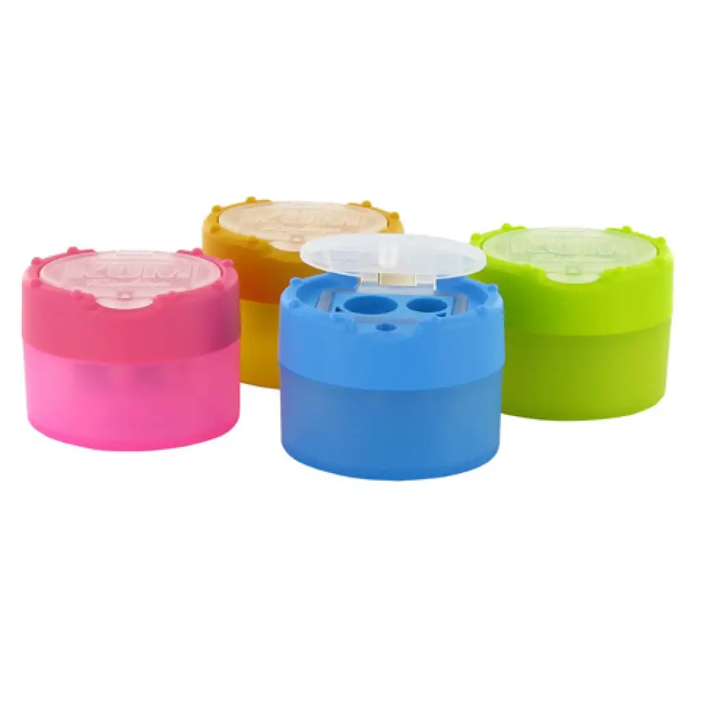 Ez a hegyező igen szép dizájnnal rendelkezik. Színei is a mai kor és gyermekek igényeinek megfelelők. Emellett gondosan ügyeltek a praktikumra is, hiszen a hegyező tartállyal van ellátva. A hegyező kétféle méretű ceruza hegyezésére alkalmas. Minőséget képvisel, tehát nem kell attól félni, hogy ceruzáink hegye sorra eltörik, beszorul a szerkezetbe.