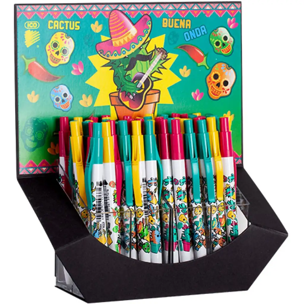 Ez a kaktuszos golyós toll garantáltan vidám mexikói hangulatot varázsol a gyerekek tolltartójába, és még a legnehezebb iskolai napot is képes egy kicsit izgalmasabbá varázsolni. A különféle színekben pompázó toll egyszerűsége természetesen az ICO-tól megszokott minőséggel párosul, így biztos, hogy a gyerekek vagy épp a felnőttek is nagy hasznát tudják venni. A toll belsejébe egy X20-as betét került, ami 0,8 milliméteres vonalvastagsággal és a kék színű tintájával biztos, hogy egy gyakran használt darabja lesz az írószereknek.