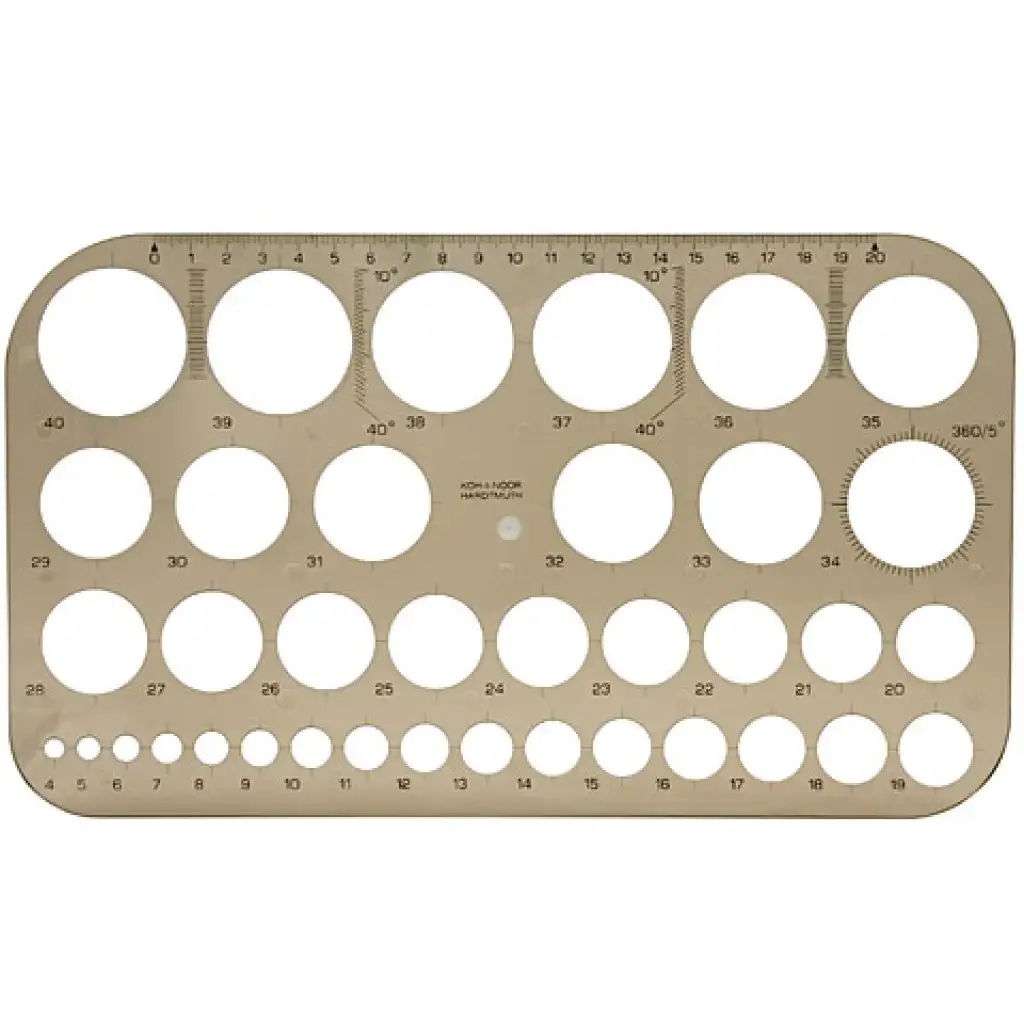 Több különböző átmérővel rendelkező kör alakzat készíthető el ezzel a különleges sablonnal, mely nagy segítség lehet műszaki rajzok készítésekor. A füstszínű, műanyagból készült sablon a felnőttek számára nagy segítség a tervezőasztalon, azonban gyerekek érdekességképpen is használhatják rajzaik készítésekor. A különleges sablon remekül használható a méretezésnek köszönhetően.