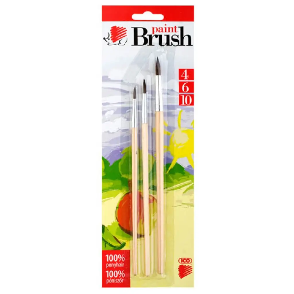 ICO: natúr fanyelű póniszőr ecset háromféle méretbenICO: natúr fanyelű póniszőr ecset háromféle méretben