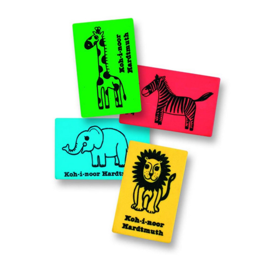 A KOH-I-NOOR új generációs radírjai ezek, a szafari állataival mintázott radírok. A radír alapszíne is más, szinte már fluoreszkáló. A színezés ellenére pont ugyan olyan minőségben képes radírozni, mint a hagyományos KOH-I-NOOR radír. A szafari állataival mintázott radír jó választás radír szempontjából a kisebbeknek, hiszen ők azok, aki a legjobban vágynak a színekre, formákra.
