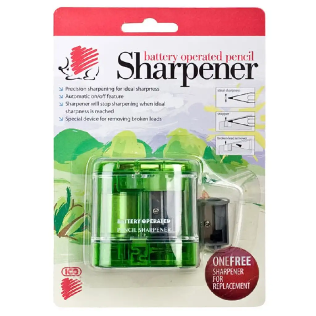 A ceruzáid karban tartásához nagy segítség lehet egy elektromos hegyező, mellyel a hegyezéssel járó folyamat jelentősen leegyszerűsíthető, és lerövidíthető. Ez a hegyező praktikus méreténél fogva bevethető akár az órán is. Elfér a zsebben, vagy egy nagyobb tolltartóban is. Használatához csak 2 ceruza elemre lesz szükség. Grafit és színes ceruzák hegyezésére egyaránt alkalmas.