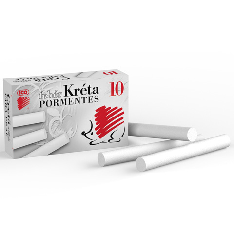 Az iskolai oktatásban mind a mai napig elengedhetetlen kellék a hagyományos táblakréta mellyel a fekete iskolai táblára szoktak írni. Ebben a dobozban összesen 10 darab táblakréta található. Használható számtan, mértan, rajz, irodalom, vagy minden olyan órán ahol nem alkoholos filccel, hanem hagyományos krétával tartják az oktatást a diákoknak. A kréta kör keresztmetszetű, fehér színű, és köszönhetően az ICO több évtizedes gyártási tapasztalatának pormentesen használható.