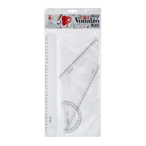 A vonalzó készlet a legpraktikusabb választás minden iskoláskorú gyermek esetében, hiszen tartalmazza az összes, mértanhoz szükséges eszközt. Tartalmaz egy 30cm hosszú egyenes vonalzót, egy egyenlő szárú vonalzót, és egy 60°-os vonalzót, ezen felül egy szögmérőt is. Sérülés esetén a szett minden darabja egyenként, külön-külön pótolható. A vonalzó emellett, anyagánál fogva könnyen tisztán is tartható.