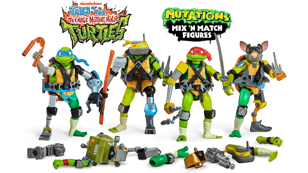 A Mutations Mix ‘N Match Tini Nindzsa Teknőcök akciófigurák 4,5 hüvelyk magasak és a karakterek megjelenésén alapulnak a Tales of the Tini Nindzsa Teknőcök című műsorban, amely a Paramount -on fog debütálni ezen a nyáron. Minden Mix ‘n Match figura tartalmaz egy másik figura darabjait a gyűjteményből, valamint a saját fegyvereiket, így a gyerekek keverhetik és összeilleszthetik a darabokat, hogy új karaktereket és mutánsokat hozzanak létre.