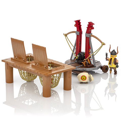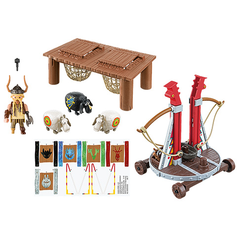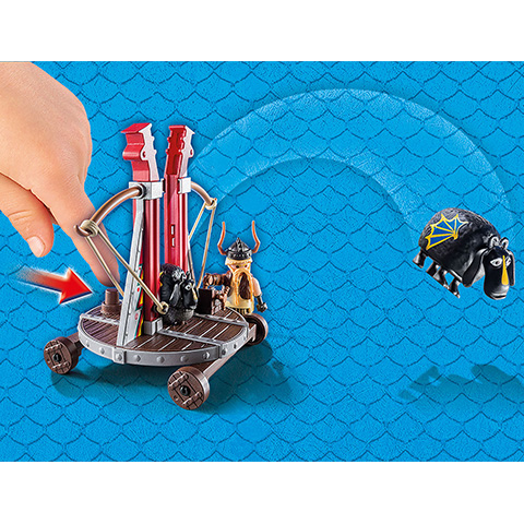 Bélhangos alighanem az Így neveled a sárkányodat mesefilm legviccesebb figurája, amit mi sem bizonyít jobban, minthogy egy birkacsúzlival veszi fel a harcot az ellenfeleivel. A báránycsúzlival a bárányok a levegőbe hajíthatók, csak a kilövőteknőt lefelé kell nyomni, amíg a helyére nem kattan. A hátsó gomb megnyomásával kilövi a bárányokat. A bárányok feje forgatható, a figurák két hátsó lábuknál fogva tarthatják őket. A fa emelvényen találhatók a fogóketrecek. A fogóketrecek fedelére felragaszthatók a mellékelt matricák. A Playmobil figurák és kiegészítők kompatibilisek egymással így a gyerekek szabadon variálhatják őket, hogy egy igazi, színes és változatos világot alkossanak meg általuk, amelyekben a legkülönösebb történeteket is el lehet játszani.