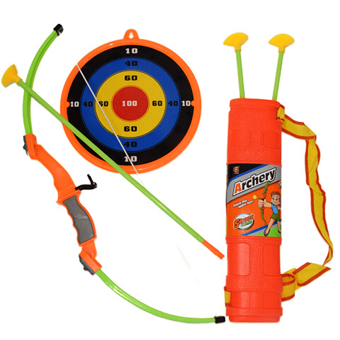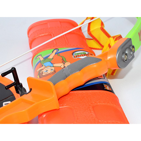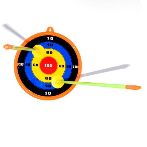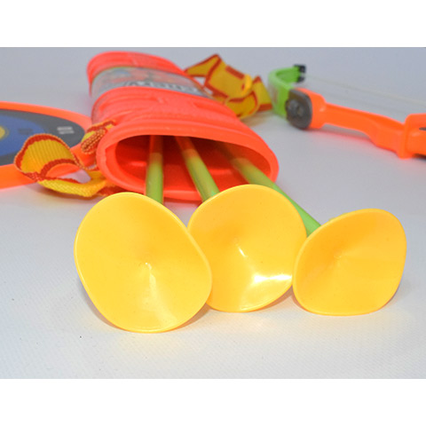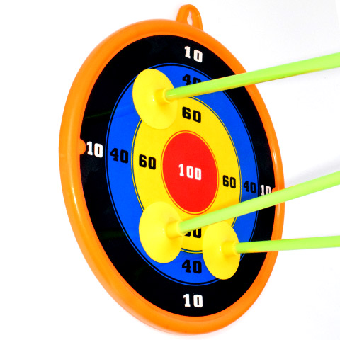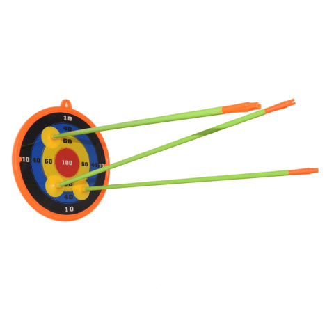 Fedezd fel az íjászat örömeit ezzel a vidám és színes gyermek íj szettel, amely zöld és narancssárga színben kapható! Az íj mérete 55 cm, a nyílvesszők mérete 45 cm, ami tökéletes méretű a gyerekek számára, és lehetővé teszi a könnyű és kényelmes használatot. A könnyen kihúzható íj lehetővé teszi a gyermekek számára, hogy egyszerűen és könnyedén használják a szettet. A 3 db tapadókorongos nyílvessző biztonságos játékot nyújt. A szettben található felakasztható céltábla 23,5 cm méretű, amelyet egyszerűen fel lehet akasztani, majd a tapadókorongos nyílvesszőkkel ezt lehet megcélozni, melyek feltapadnak rá. Az íj szett 5 méter lövő távval rendelkezik, ami elegendő távolságot biztosít a gyerekek számára, hogy élvezzék az íjászatot és fejlesszék a célzási képességeiket. Ne hagyd ki ezt a vidám és izgalmas zöld és narancssárga íj szettet, amely minden korosztály számára remek szórakozást és kikapcsolódást kínál!