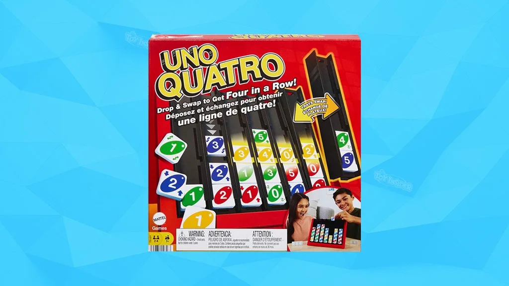 A 7 éves és idősebb gyerekek számára tervezett UNO Quatro a Mattel által kínál egy új élményt az UNO játékkal, egy csavarral, amely a Connect Four játékból inspirálódott. A játékosok a kezüket egy zsákból választják ki, amely kis csempéket tartalmaz, amelyek nagyon hasonlítanak a hagyományos UNO kártyákra. Néhány csempe "akció csempe", amely lehetővé teszi, hogy tálcákat cseréljenek, kibökjenek darabokat, és ellopjanak csempéket egy másik játékostól.