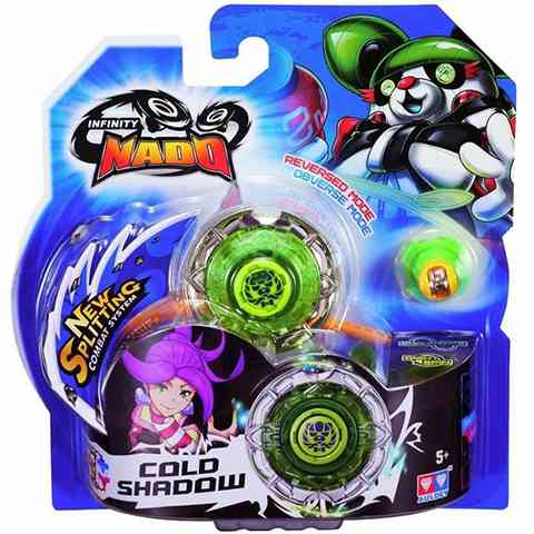 A Cold Shadow az egyik legnépszerűbb Infinity Nado versenyző a sok pörgettyű közül, ami nem is meglepő, hiszen a Shadow a stabilitásával és mozgékonyságával jó eséllyel szerez győzelmet, különösen, ha a megfelelő módon tökéletesítik. A neon zöld színével és a vagány pandás mintájával az arénák egyik kedvence. Természetesen a többi Nadohoz hasonlóan a Cold Shadow pörgettyű is felszerelhető a külön kapható speciális hegyekkel, amelyekkel a legextrémebb trükköket lehet majd bemutatni.