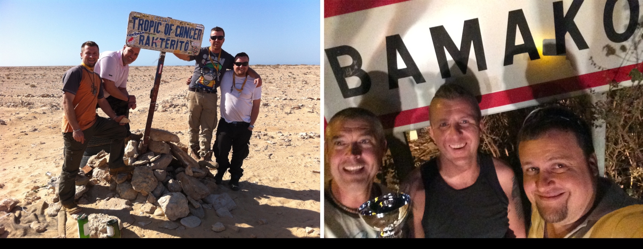 Fotó a ráktérítőt jelző táblánál / A Bamako táblánál a győzelem után