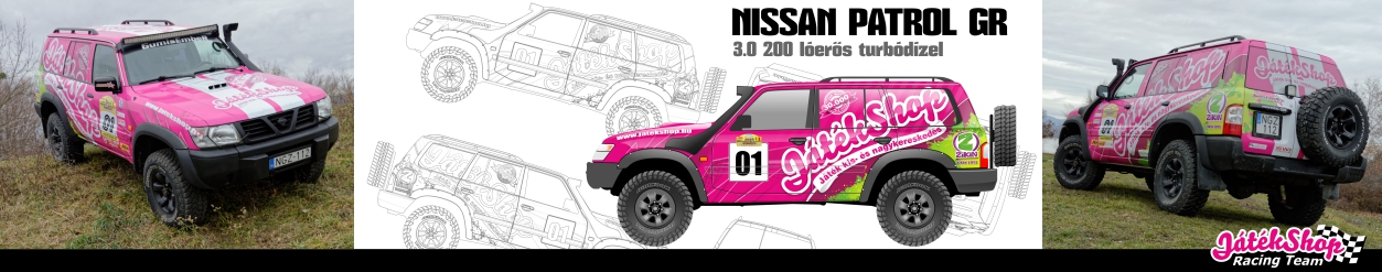 A Patrol GR régi új autónk, 3 literes turbódízel motoros kb. 200 lóerős, ami bizonyított már hazai és Afrikai versenyeken egyaránt. A kocsit a 2018-as versenyre teljesen felújítottuk. Egy megbízható, kiváló tereptulajdonságokkal bíró modell a teljesen gyári jármű is. A mi gépünk egy speciálisan erre a versenyre átépített autó, egyedi futóművel, erősebb motorral, nagyobb hatótávot biztosító üzemanyag tartállyal és hosszan sorolhatnám a kisebb-nagyobb módosításokat… egyszóval ”csúcsszuperpöpec” autónk van :-)
