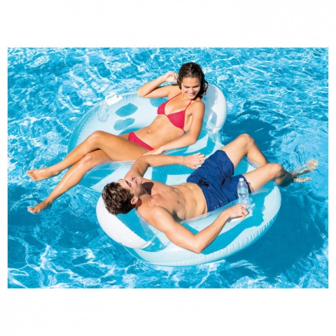 A nyári melegben, a medencében vagy a tengerparton mindenkinek jól jöhet egy matrac, amibe kényelmesen elhelyezkedhet és lógathatja a lábát a vízbe. Most egy ilyen matracot szerezhetsz be, ami kétszemélyes, így nem csak egyedül lehet használni. Kényelmes háttámlát is kapott, így hátradőlve élvezhetjük a nyarat, ráadásul még egy pohártartó is van benne, aminek segítségével, mindig kéznél lehet az innivaló. Mérete miatt kényelmesen használható, és egymással szembe lehet beleülni, így még praktikusabb.