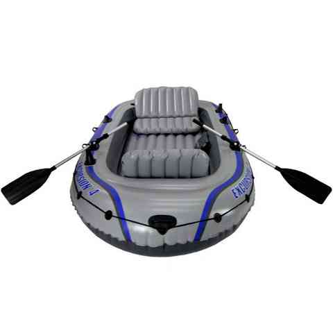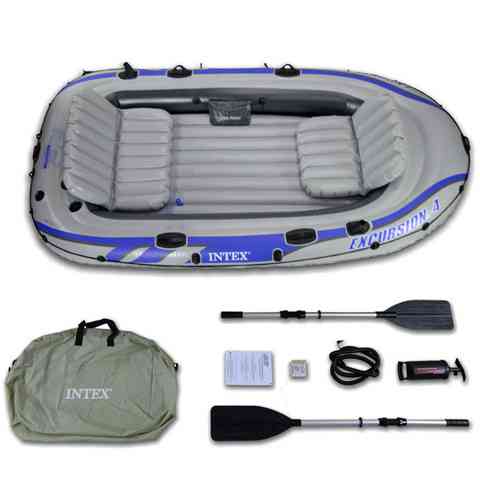 Az Excursion 4 egy olyan gumicsónak ami ideális választás arra az esetre, ha nem akarunk utánfutóval bajlódni, vagy nincs elég helyünk egy csónak tárolására. A csónak el van látva minden szükséges felszereléssel az evező tartó szemektől kezdve, a körbe futó kötélen keresztül a felfújható háttámlás ülésekig, ráadásul a belső részen egy nagyobb zseb is helyet kapott amiben az apróságokat el lehet helyezni. A teherbírása 455kg, ehhez erős oldalfalak, biztonsági szelepek és több részes hajótest tartozik, így horgászáshoz és szabadidős csónakázáshoz is kiváló választás. A készletben találunk egy pár evezőlapátot is valamint egy hatékony pumpát, aminek a segítségével rövid idő alatt tudjuk megfelelő keménységre pumpálni a hajót illetve egy javítókészletet az esetleges lyukak javításához.