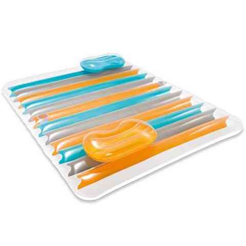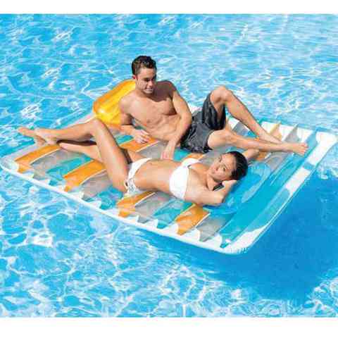 Igazán kényelmesen pihenhettek ezen a két személy számára is tökéletes matracon, melynek két kényelmes párnája is van, hogy valódi pihenés legyen a hullámokon ringatózás. A színes gumimatrac tökéletes párok számára, hiszen a majd két méteres hosszúság és a másfél métert meghaladó szélesség lehetővé teszi két felnőtt ember számára is, hogy kényelembe helyezze magát. A vidám színek mellett mindkét oldalon egy pohártartó is kialakításra került, hogy a frissítőt se kelljen nélkülözni, ha esetleg a parttól messzebb szomjaznánk meg.