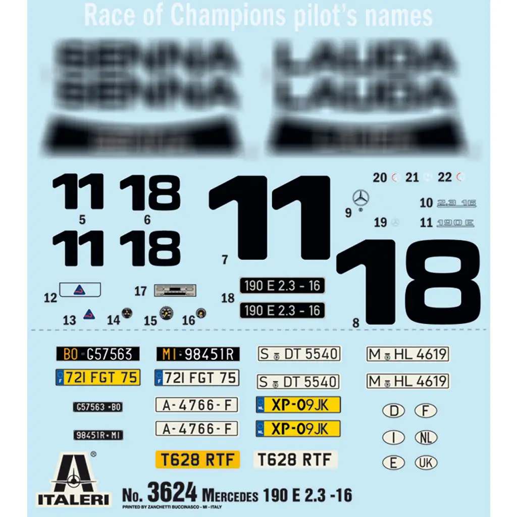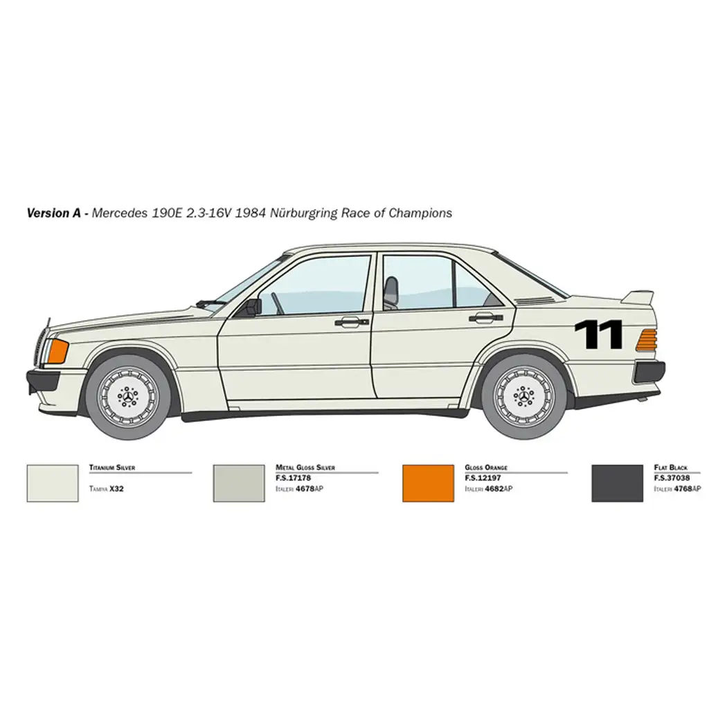Ez az 1:24 méretarányú Italeri makett hűen visszaadja a legendás Mercedes-Benz 190E 2.3 16V megjelenését és részleteit. A kész modell 18,4 cm hosszúságú, és precízen kidolgozott belső teret, karosszériát, valamint valósághű gumiabroncsokat tartalmaz. A matricakészlet lehetővé teszi a Nürburgring Race of Champions versenyautó megjelenítését. A makett minden részlete gondosan megmunkált, így ideális választás mind kezdő, mind haladó modellezők számára.
