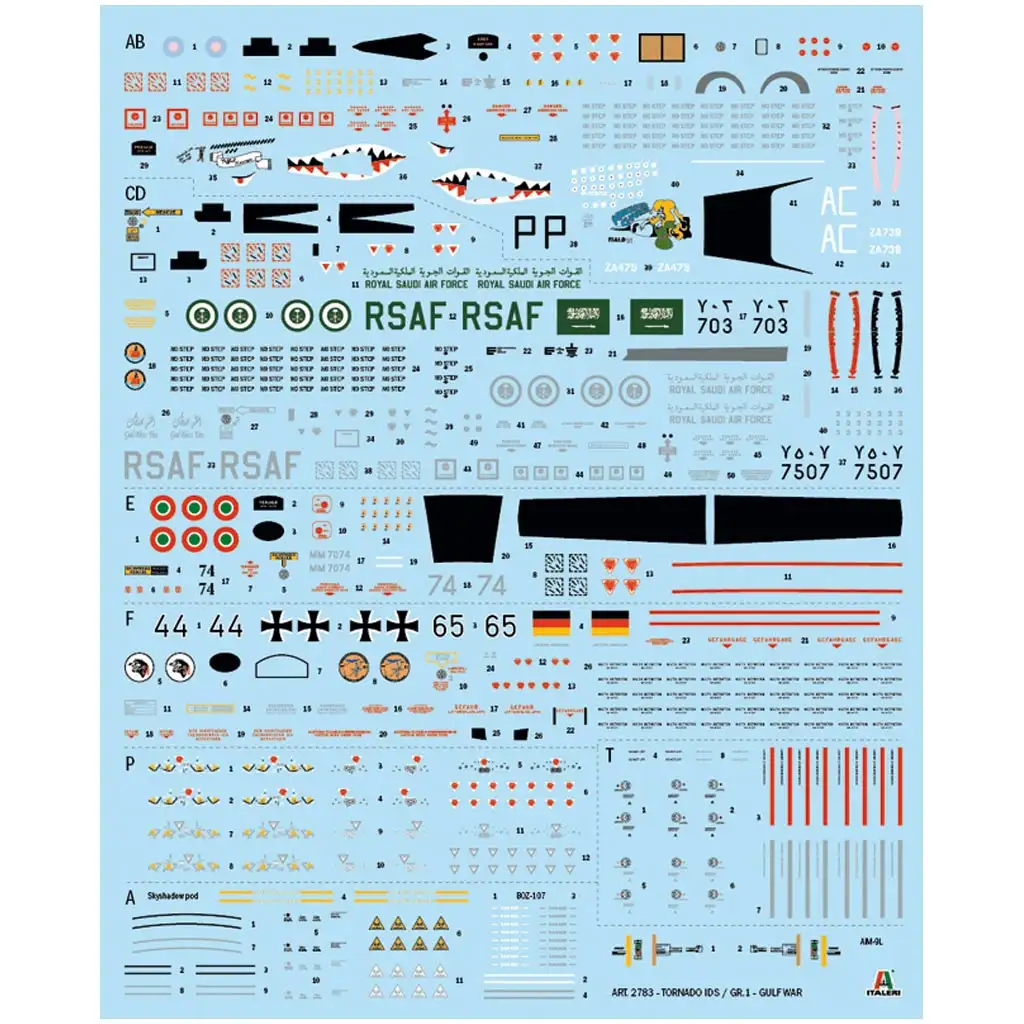 Ez a prémium minőségű Italeri 1/48 méretarányú makett rendkívül részletes kidolgozású, amely hűen visszaadja a Tornado GR.1/IDS jellegzetes vonásait. A panelvonalak precíz kidolgozásúak, a pilótafülke, a futómű és a fegyverzet valósághű részletességgel jelenik meg. A készletben többféle matricázási opció található, köztük az Öböl-háborúban bevetett brit és olasz verziók egyedi festése is.
