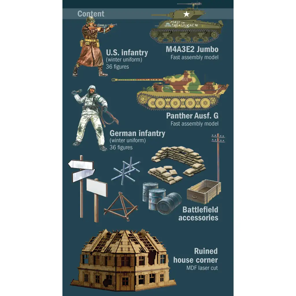 Italeri 1/72 Bastogne Siege csata figurákkal és tankokkal dioráma makett szettItaleri 1/72 Bastogne Siege csata figurákkal és tankokkal dioráma makett szett