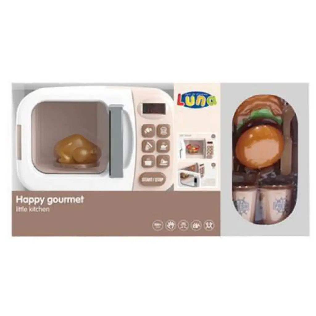 A mikrohullámú sütők mára szinte minden konyhában megtalálható alapvető felszerelésnek számítanak, ami nem is csoda, hiszen rendkívül praktikus és biztonságos eszközről van szó. Ebben a játékkészletben pedig a gyerekek nem csak egy sütővel gazdagodnak, hanem étkészlettel, egy hamburgerrel és egy sült csirkével is. A Luna kiváló minőségű játék háztartási gépeivel a kisgyerekek berendezhetik a szobájukat, kiegészíthetik a konyhájukat, de önmagukban is remek lehetőséget kínálnak arra, hogy a gyerekek megismerjék és eljátsszák a Házimunkákat.