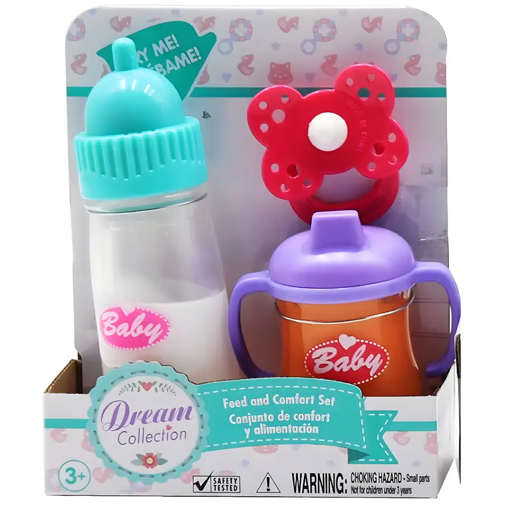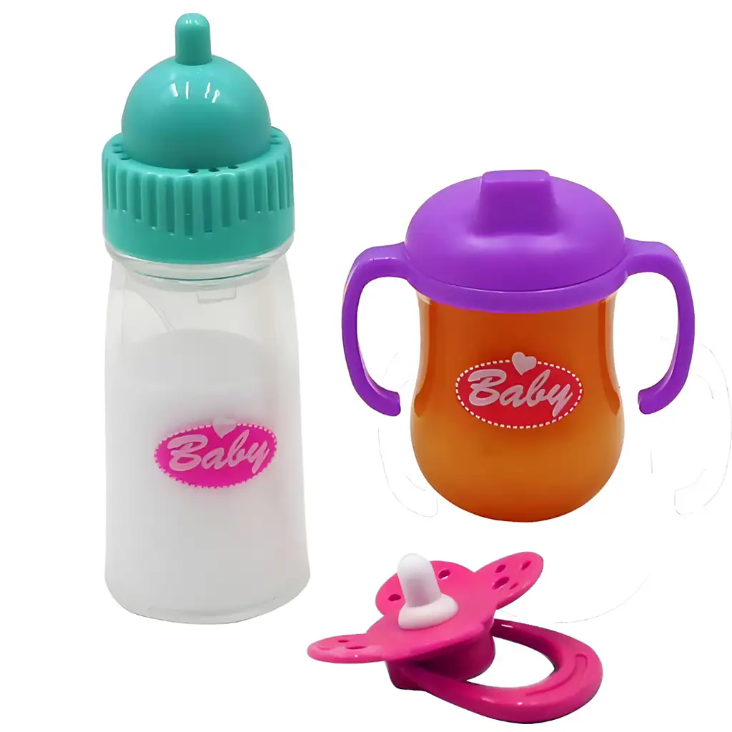 Ez a játék baba kiegészítő szett ideális választás minden kislány számára, akik szeretnek babázni. A készlet tartalmaz 2 darab játék cumisüveget és egy cumit, így a gyerekek teljesen felkészültek lehetnek arra, hogy gondoskodjanak babájukról.