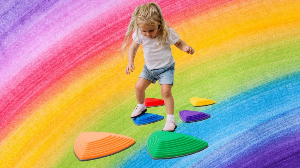 Ez a készlet hat élénk színű lépőkövet tartalmaz két méretben és modern színekben – sárga, piros, világoskék, zöld, narancs és sötétkék. Minden kő texturált felülettel és gumírozott aljjal készült a biztos tapadás érdekében, így minden lépés biztonságos és élvezetes. Ráadásul ezek a lépőkövek sokoldalúak, lehetővé téve a gyerekek számára, hogy különböző utakat hozzanak létre, amelyeken sétálhatnak és ugrálhatnak anélkül, hogy hozzáérnének a padlóhoz.