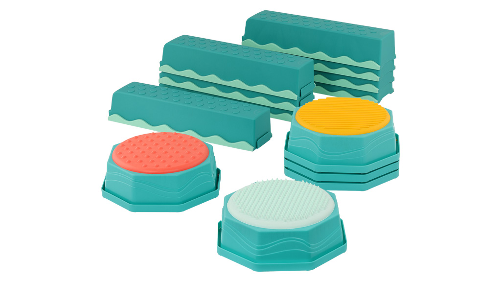 A gyerekek kifejezhetik kreativitásukat és fejleszthetik problémamegoldó képességeiket, miközben különböző akadályokat építenek és bontanak le. Minden lépés új érzékszervi élményt nyújt a gyerekeknek, ahogy végigsétálnak rajtuk — egyes lépések texturált, műanyag tüskékkel vannak ellátva, míg mások csíkokat vagy hullámokat tartalmaznak. Emellett fejlesztik a koordinációjukat és a nagy motoros készségeiket is, miközben megpróbálják követni az egyensúlypályát.