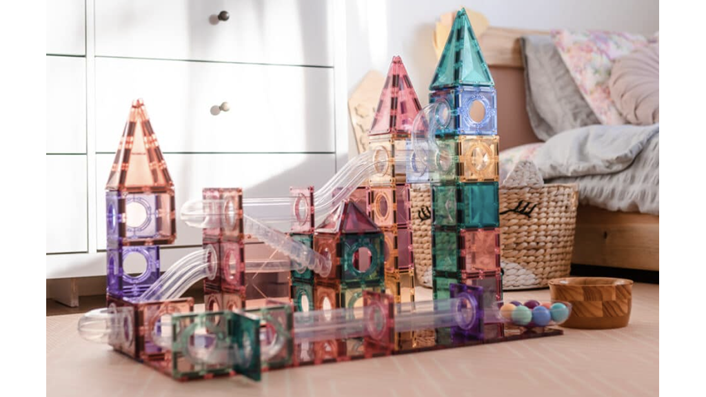 Ez az építőkészlet mágneses csempéket tartalmaz különböző pasztell színekben, valamint különféle átlátszó bordázott csöveket és lépcsőket, amelyek a csempékhez kapcsolódnak. A csomagban nyolc színes fa golyó is található, amelyeket a gyerekek le tudnak küldeni az általuk tervezett és létrehozott pályákon. Ez a 106 darabos készlet kompatibilis az egész Connetix sorozattal, valamint más mágneses csempe márkákkal is.