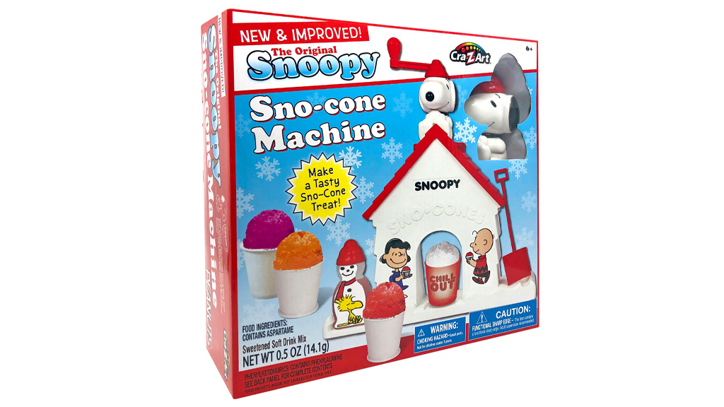 A gyerekek használhatják a Cra-Z-Art Snoopy Sno-Cone Machine-t, hogy ízesített jégkását készítsenek. A készlet tartalmazza a Snoopy jégdarálót és a kutyaház alapegységet, egy piros jéglapátot, egy újrahasználható műanyag poharat, két jégkockatálcát, egy ízesítő keverék csomagot, három papírpoharat, és egy szirup adagoló üveget, amely úgy néz ki, mint egy hóember Woodstockkal.