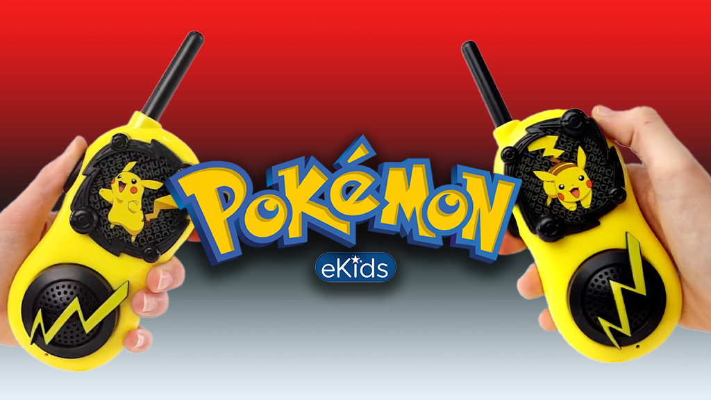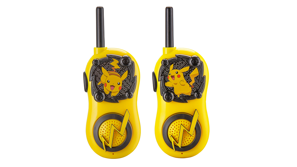 A kicsik beszélgethetnek társaikkal ezekkel a Pokémon-témájú walkie-talkie-kkal az eKids-től. A készlet két sárga és fekete walkie-talkie-t tartalmaz, amelyeket Pikachu inspirált, és villámcsapás díszíti a hangszórón, valamint mini Pokélabda minták veszik körül a Pokémon grafikáját. A 3 éves és annál idősebb gyerekek használhatják a készüléket a be-/kikapcsoló gomb, a beszélő gomb, a hangszóró és a mikrofon segítségével. A beszélő gomb megnyomásával és tartásával a gyerekek titkos üzeneteket küldhetnek több mint 150 méter távolságból.