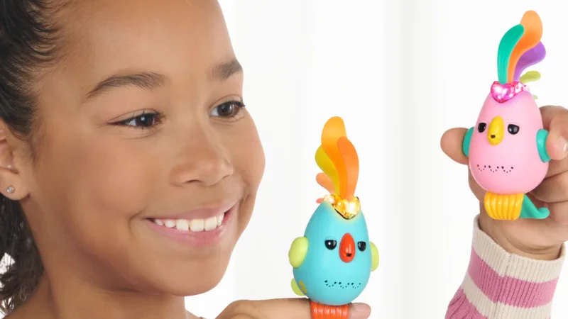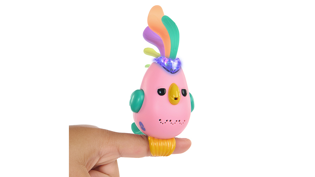 Ez a madár rózsaszín és kék színben kapható, és több mint 40 hangot és reakciót produkál. Amikor a gyerekek a madarat az ujjukra helyezik, titkos üzeneteket rögzíthetnek és lejátszhatnak, vagy a madár meghallgathatja és megismételheti, amit a gyerekek mondanak.