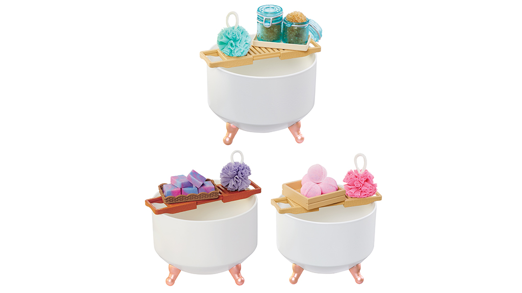 Ezek a rejtélyes, gömb alakú kapszulák valódi, működő spa termékeket tartalmaznak miniatűr formában. A gyerekek használhatnak keverőporokat, illatosított olajat, egy keverőtálat, formákat, egy luffát, egy ládát és egy spa tartót, hogy négy fürdőbombát, két cukros bőrradírt és egy szappant készítsenek, amely kisebb szappanokra osztható. A kapszula egyben egy fürdőkád kijelzőként is szolgál, így a gyerekek saját kis spa-jukat is berendezhetik, ha nem használják fel azonnal a termékeket.