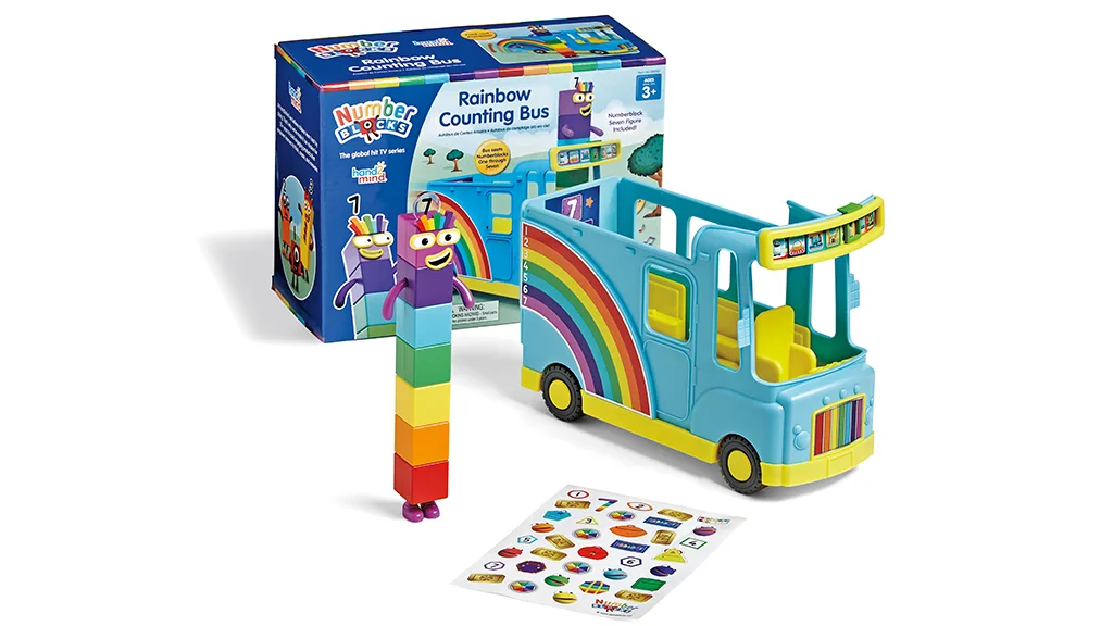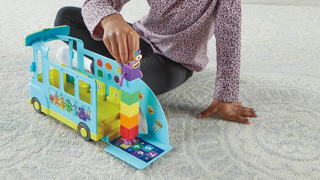 A busz maga interaktív játék funkciókkal van tele: A gördülő kerekeken túl, a hátulja kinyílik, hogy létrehozzon egy szivárványt és felfedjen egy ugróiskola táblát a gyerekek számára a számoláshoz. Van elég hely, hogy a gyerekek magukkal vigyék bármelyik további Numberblocks figurájukat, valamint bármelyik akciófigurát, amelyiket szeretnék, hogy csatlakozzon a szórakozáshoz.