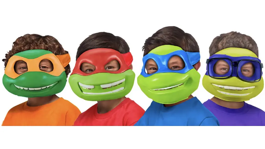 A gyerekek átváltozhatnak a kedvenc Teknőc karakterükbe ezekkel a teljes arcot elfedő maszkokkal. Ezek a maszkok a tavalyi CG-animált Mutant Mayhem film stílusában készültek, és minden maszk részletesen megfelel a Teknősök film megjelenésének.