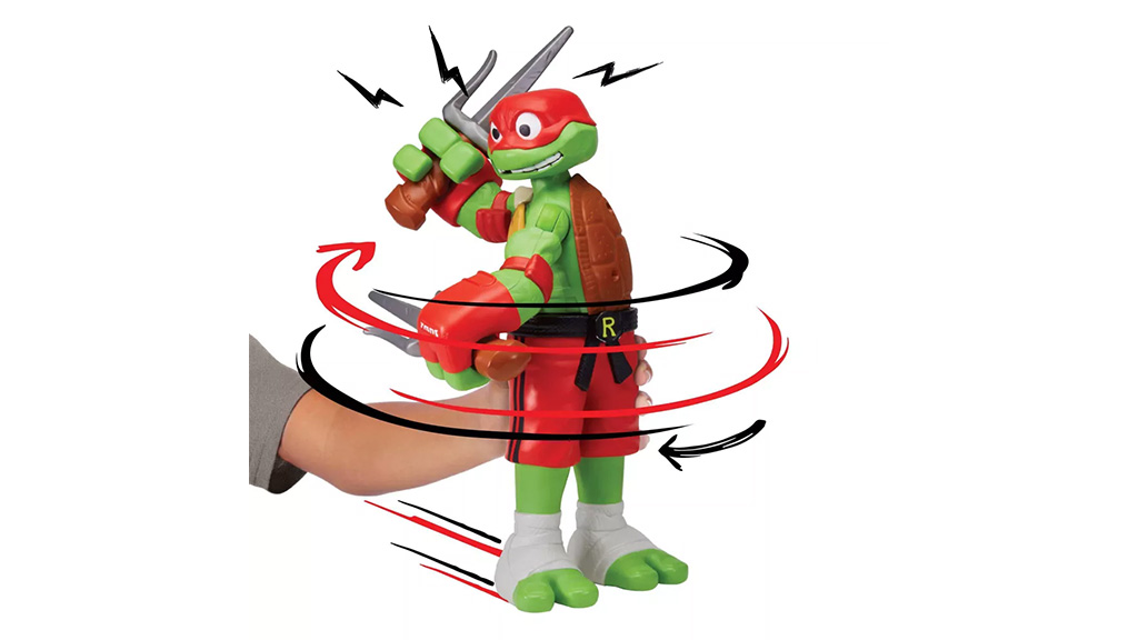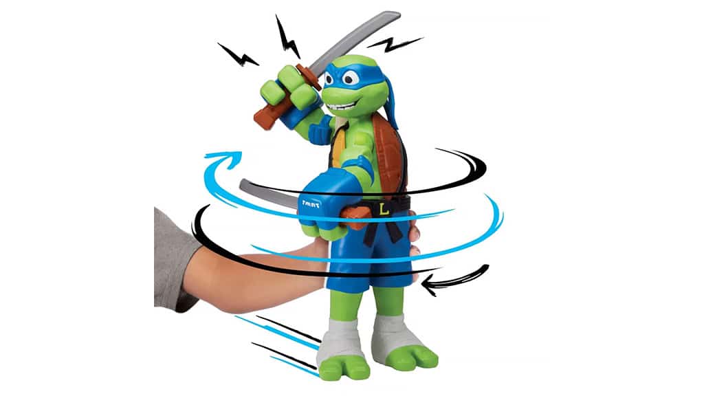 Ez a nagy Tini Nindzsa Teknőcök Meséi akciófigura 360 fokban forog, amikor egy sík felületen gurítják, köszönhetően a játék alján található kerekeknek. Ezek a karakterek nagy, mozgatható karokkal rendelkeznek, amelyek könnyen hajlanak és csavarodnak.