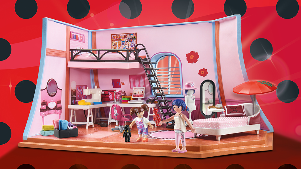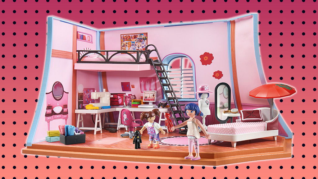 Ez a játékkészlet, amelyet Marinette szüleinek pékségében található hangulatos tetőtéri lakása ihletett, egy valósághű padlópanelt, dekoratív oldalfalakat, egy tükröződő felületű öltözőtükröt, valamint egy kanapét tartalmaz, amely ülő- és pihenőhelyként is szolgál. A gyerekek a varrógépet az oldalsó karral működtethetik.
