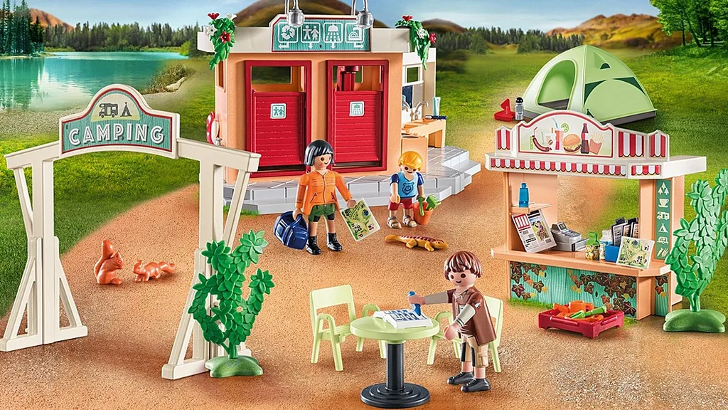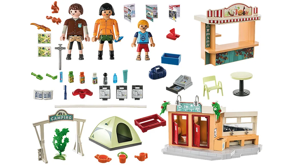 Ez a készlet mindent tartalmaz, amire a gyerekeknek szükségük van egy szórakoztató nyaraláshoz a szabad ég alatt. A táborhely lehetővé teszi a kempingezés örömeit anélkül, hogy elhagynák a házat. A gyerekek megalkothatják álmaik kempingezését a 100 darabos készlet három Playmobil figurájával, egy kioszkkel, egy asztallal, székekkel és további táborozáshoz kapcsolódó kiegészítőkkel.