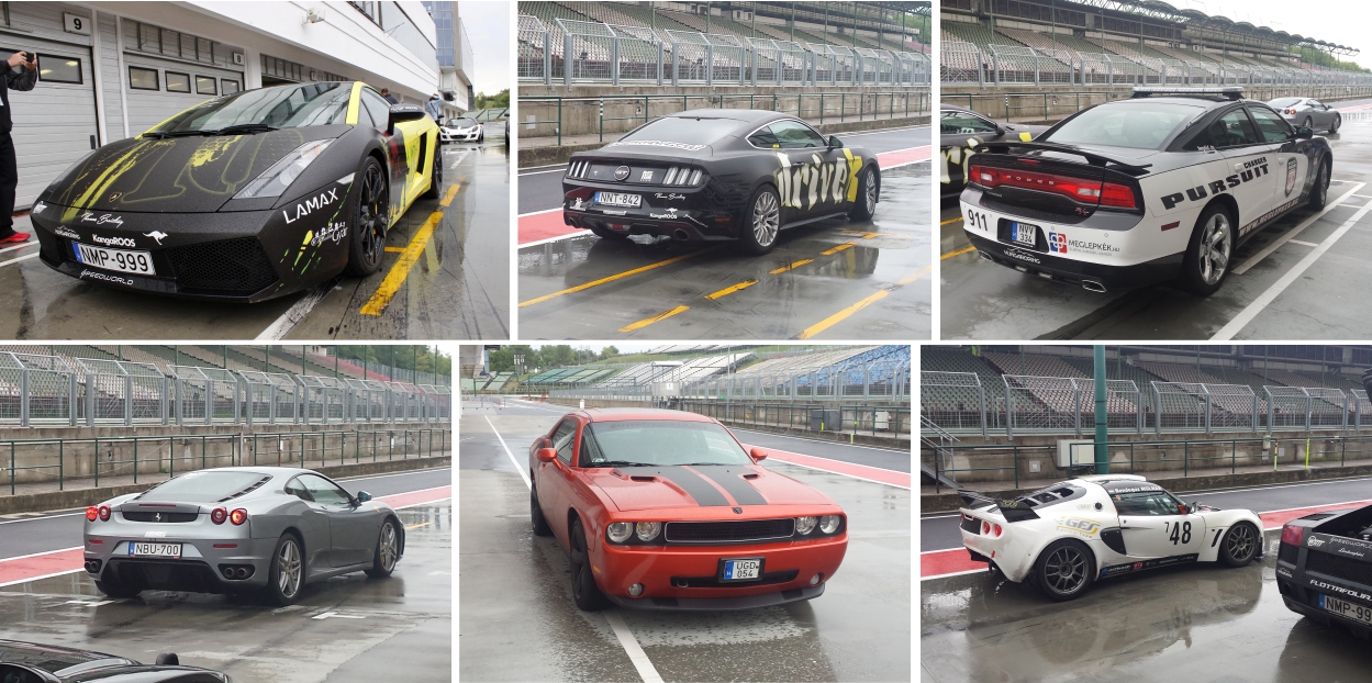 Az adminisztráció végén lehetett a boxutcába lépni, melyből már egyenesen a pályára vezetett az út. A kocsik a felvezető szélén parkoltak, mellettük instruktorok sürögtek, akik a sofőröket készítették fel a vezetésre. Ők azok, akik a pályán is a kocsiban ülnek és minden mozzanatunkat figyelik, hogy probléma esetén azonnal be tudjanak avatkozni. Valljuk be, hogy kevesen vannak azok, akik ekkora sebességhez szoktak, arról nem is beszélve, hogy egy ilyen rendezvény alkalmával nem csak egy autó van a pályán, hanem szinte minden pillanatban keresztülhasít egy-egy álomautó a rajtvonalon. Itt már a boxutca felvezetőjéből történő kihajtás is nagy figyelmet igényel éppen emiatt.