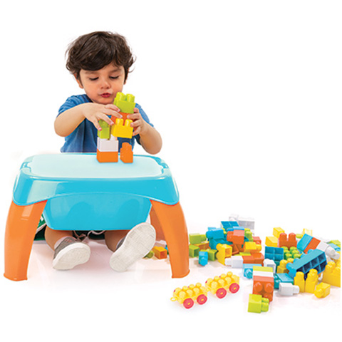 Ez a lágy színekben pompázó játszóasztal gyermeked nagy hasznára lehet, hiszen kényelmesen leülhet mellé és az asztal tetején állíthatja össze a kockákból azt az építményt, amely a fantáziájában megszületett. Az asztal az építőjátékokon kívül még számtalan más dologra is felhasználható, akár gyurmázni és rajzolni is lehet a felületén. Az asztal felnyitható és egy nagy méretű tárolótér helyezkedik el a belsejében amelyben akár az építőkockákat, akár a saját kincseit is tárolhatja.