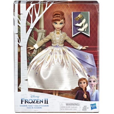 A Jégvarázs mesefilmből jól ismert szépséges hercegnő Anna egy nagyon különleges báli ruhában lehet most a kislányok kedvenc játéka. A gyönyörű baba vörös haja egy csinos kontyba van fogva, és a báli ruhához illően sminkje és szempillái is nagyon különlegesek. Az aprólékos kidolgozásnak köszönhetően Anna megszólalásig hasonlít a mese második részében látott szereplőre. A csinos figura végtagjai mozgathatóak, így a gyerekek kedvükre eljátszhatják a mesében látott kedvenc jeleneteiket vagy új, kedves történeteket találhatnak ki segítségével.
