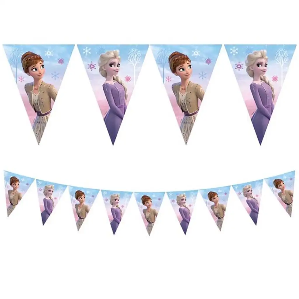 Tedd varázslatossá a gyerekzsúrt ezzel a mesés Jégvarázs zászlófüzérrel, amelyen a gyerekek két kedvence, Anna és Elsa díszítik a háromszög alakú zászlócskákat. A színes, jeges hangulatot idéző háttér, a hópelyhek és a karakterek bájos mosolya egy csapásra ünnepi és mesebeli hangulatot teremt.