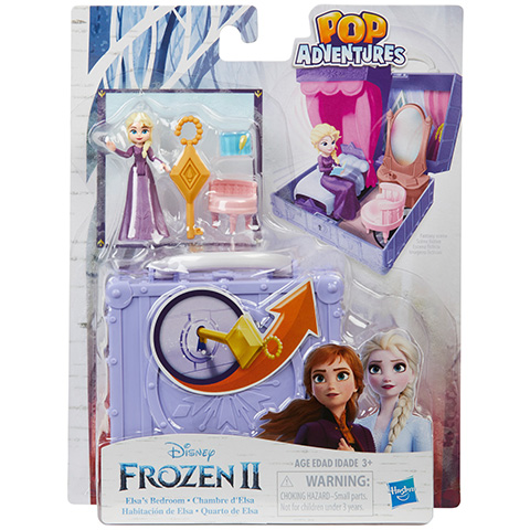 Ebben a Pop Adventures csomagban egy kis ládika található, amit a hozzá való kulccsal lehet felnyitni, és a tartalmának köszönhetően azonnal kézzelfoghatóvá válik a Jégvarázs mesefilm a gyerekek számára. A kis ládában ugyanis Elza hercegnő hálószobája található a baldahinos ággyal, a hatalmas tükörrel és természetesen magával Elza hercegnővel. A készlet természetesen tartalmazza a részletgazdagon kidolgozott mesefigurát is, aminek a segítségével a gyerekek feleleveníthetik fel a filmet és új kalandokat is kitalálhatnak.